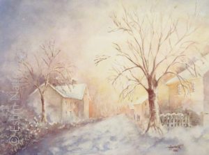 "Maison en paysage d'hiver" 39 x 29 cm, très bon état. Signature Henri Leclerc, artiste régional du Nord de la France, deuxième moitié du XXe siècle, ancien élève de l'Ecole des Beaux-Arts de Tourcoing et de l'Académie des Beaux-Arts de Mouscron en Belgique, très bon état.