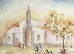"Eglise espagnole" 38 x 28 cm, très bon état. Signature Henri Leclerc, artiste régional du Nord de la France, deuxième moitié du XXe siècle, ancien élève de l'Ecole des Beaux-Arts de Tourcoing et de l'Académie des Beaux-Arts de Mouscron en Belgique, très bon état.