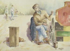 "Le limonaire" 38 x 28 cm, très bon état. Signature Henri Leclerc, artiste régional du Nord de la France, deuxième moitié du XXe siècle, ancien élève de l'Ecole des Beaux-Arts de Tourcoing et de l'Académie des Beaux-Arts de Mouscron en Belgique, très bon état.