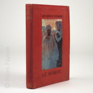 " Le Maroc", commandant Haillot, (les beaux voyages), 1912, les arts graphiques, 117 pages et 12 agréables hors texte couleur, mouillure au second plat sur 10 pour cent de celui ci sans atteinte au texte toutefois