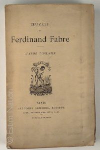 "OEuvres de Fabre Ferdinand", l'abbé Tigrane, Paris, Lemerre, 1888, in-12 broché, 316 pages, un des 15 exemplaires numérotés sur hollande à toutes marges bon exemplaire
