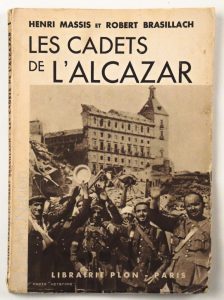"Les cadets de l'Alcazar", Henri Massis et Robert Brasillach, Paris, librairie Plon 1936, in-12 broché, 92 pages, édition originale, plis angulaires, pages jaunies