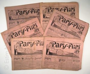 "Paris flirt", ensemble de 21 numéros de 4 pages format tabloïd sur papier rose, 6 N° de 1926/9 N° de 1923/4 N° de 1924/2 N° de 1925, numéros bien homogènes
