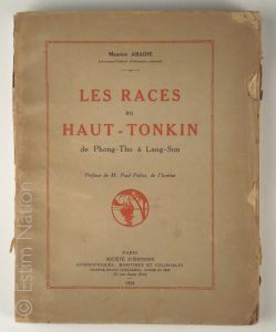 "Les races du Haut-Tonkin, de Phong-tho à Lang-Son", Maurice Abadie, Paris, Sté d'éditions géographiques, maritimes et coloniales, 1924, in-4 broché, 194 pages, exemplaire bien complet, pages et planches, petits manques au 1er plat, corps bien homogène, exemplaire à relier toutefois (plus de dos),