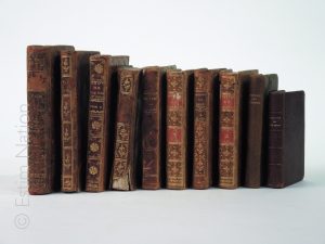 Ensemble de 10 reliures dépareillées de thèmes divers, in-16, état moyen à bon état.