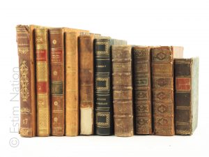 Ensemble de 10 reliures dépareillées de thèmes divers, in-16 et in-8, état moyen à bon état.