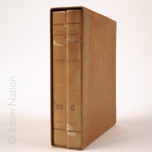 "Le Feu. Journal d'une escouade."Illustré de gravures sur verre de André Collot.- Angoulême, L'Heptameron, chez Jean Emery, 1949.- 2 volumes in-8, brochés. Dans un cartonnage. Exemplaire numéroté sur vélin d'alfa.
