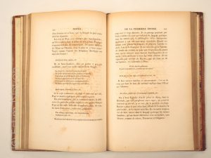 "Traduction de l'Essai sur l'Homme de Pope en vers français précédée d'un discours et suivie de notes avec le texte anglais en regard Par M. De Fontanes de l'Académie Française", Paris chez Le Normant, Seconde édition, 1822. Reliure plein cuir orné, dos à nerfs, tranches dorées.