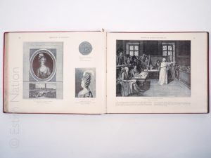 1 album demi-reliure à coins cuir rouge, plats percaline et or, tranches dorées