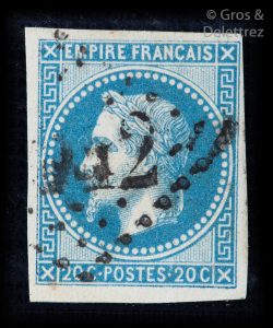 FRANCE Émission 1863 : N°29 NON DENTELÉ (Dit LEBAUDY) oblitéré Gros Chiffre. Rare. TTB.