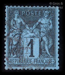 FRANCE Émission 1877/78 : 1c NOIR SUR BLEU DE PRUSSE, oblitéré cad. Très belle nuance. B.