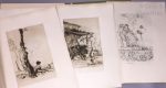 impérial contenant trois suites des gravures : un premier état en noir, avant la lettre, un état en bistre, les deux avec remarques et l’état en couleurs dans le texte des gravures avant la lettre, avec remarques. Exemplaire enrichi de 2 gravures, en deux états, refusées.