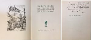[MOREAU] COLETTE. En Pays connu. Editions Manuel Bruker, 1949, in-4 en feuilles sous double emboitage, couverture légèrement piquée en marge. Illustré de 31 lithographies, dont la couverture, de Luc-Albert Moreau. Edition tirée à 150...