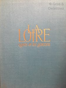 [LETELLIER] Maurice GENEVOIX. La Loire, Agnès et les Garçons. Paris, Léger, 1964, en feuilles sous chemise rempliée et coffret-emboîtage toilé avec infime tache en marge supérieure. Illustré de 15 compositions en couleurs dont 3 en double...
