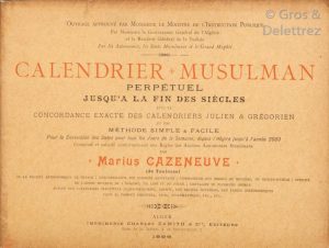 Marius CAZENEUVE (de Toulouse). Calendrier Musulman perpétuel jusqu’à la fin des siècles avec la concordance exacte des calendriers julien et grégorien et une méthode simple et facile pour la conversion des dates pour tous les jours de la...