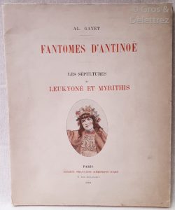 Albert GAYET. Fantômes d’Antinoë. Les sépultures de Leukyoné et Myrithis. Paris, Société française d’éditions d’art, 1904, in-4 broché couverture illustrée, (4) et 60 pages illustrées de nombreuses gravures en noir dans le texte et...