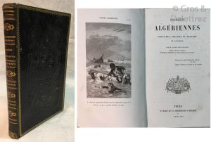 Léon GODARD. Soirées Algériennes. Corsaires, esclaves et martyrs de Barbarie. Tours, 1857, in-12 relié pleine basane noire, dos lisse orné, plats estampés à froid avec roulette d’encadrement dorée, 236 pages illustrées d’un frontispice.