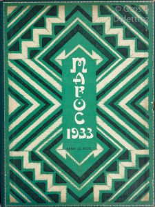 Henri LE RICHE. Maroc 1932-1933. Carnet de voyage. Neuilly, 1933, in- folio en feuilles sous portefeuille avec la couverture illustrée remontée. Illustré de 30 planches présentées sous caches de papier fort. Tiré à 1000 exemplaires, tous...
