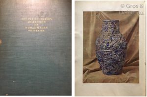 Rudolf MEYER RIEFSTAHL. The Parish-Watson Collection of Mohammadan Potteries. New york, 1922. in-folio relié pleine toile verte éditeur. Illustré de 65 planches dont 19 en couleurs protégées par des serpents légendées. Tirage limité à 500...