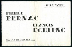 Joint : un rare programme de récital « Bernac / Poulenc » à la Salle Gaveau en 1949 (un double feuillet oblong imprimé).