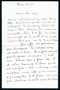 Lettre autographe signée adressée à M. Sénéchal, 1951. 4 pp. in-8 à l'encre noire, enveloppe conservée. Belle lettre dans laquelle Canteloube s'inquiète de la production de disques et de la commande d'un nouveau drame lyrique, il souhaite reprendre Cartacalha. Il ajoute bien sombrement « La France est devenue la poubelle de l'Europe ».