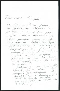 « Chère Georgette, ta lettre de bonne pensée me rejoint au Barroux où je termine la préface pour Picasso dont l’exposition de 203 peintures commencent le 23 mai au Palais de papes. Je t’enverrai le catalogue lorsqu’il paraîtra… »