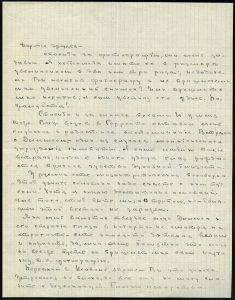 Merci de votre lettre si gentille. Votre visite à Sorrente m’a laissé un profond et joyeux souvenir. Ma rencontre avec Hellens est un cas de sympathie foudroyante. J’aime beaucoup de pareilles rencontres, lorsqu’au premier coup d’œil nait le sentiment d’une parenté morale solide. Les russes ont un proverbe misanthrope : « Pour connaître un homme, il faut avoir mangé une livre de sel avec lui ». Bien que je ne manque pas de raisons d’être misanthrope, je ne suis pas contaminé par cette maladie. Je me rappelle très bien la figure énergique d’Hellens, et ses yeux sérieux, dans lesquels, malgré cette sévérité, on devine une tristesse enfantine et de la tendresse aussi. Mais oui, je me rappelle très bien ses traits ; malgré cela, qu’il m’envoie sa photo.