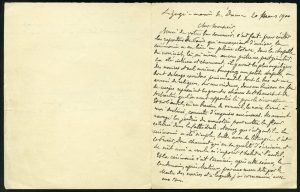 Lettre autographe signée [à son ami, Adolphe Berthet (1868-1920), alias Joseph Esquirol]. Ligugé, 20 mars 1900. 3 pp. petit in-12. Ils avaient ravagé les jardins du monastère pour mettre la fleur célébrée