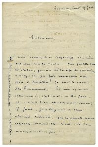 Il annonce la future naissance de sa fille qui le contraint à demeurer loin de Paris : « ...Je resterai auprès d’elle autant que possible, mais je ne saurais, sous peine de déchéance spirituelle, rester toujours – j’ai besoin d’hommes, de parisiennes, de musique et de tableaux. Je suis déjà aux trois quarts abruti… »
