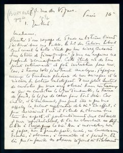 Lettre autographe signée. Paris, 1er juillet. 2 ff. ½ petit in-4 Correspondance littéraire dans laquelle l’écrivain remercie les Cahiers libres d’un article critique