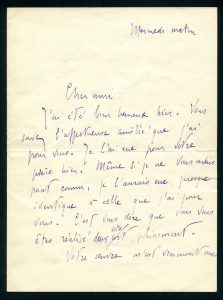 Mercredi matin : « …votre œuvre est vraiment une amie, c’est une double joie, pour le cœur et pour l’intelligence. Il est rare de sentir au théâtre cette compréhension limpide et profonde des âmes ; mais il est encore plus rare d’y sentir ce souffle d’honnêteté, cette loyauté qui y règne du commencement à la fin… »