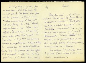 Lettre autographe signée adressée à Charles Péguy. [Paris, 1er avril 1902]. 2 pp. ½ in-16, enveloppe autographe. Mention vu, de la main de Péguy. Sur l’accueil critique de 14 juillet