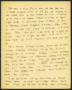 Manuscrit autographe. [1946]. 4 pp. in-4. Mais s’il est un proverbe existentialiste c’est bien celui de G. d’Orange :