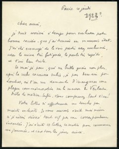 « …Et moi je pars, qui ne brille guère non plus, après la rude secousse subie, je pars demain pour Londres, où l’on me demande d’inaugurer une plaque commémorative sur la maison de Verlaine, drôle de métier… Enfin, vous comprenez. Faut vivre !