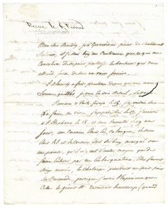 Lettre autographe signée adressée à Mon cher Baudin [le commandant Charles Baudin]. Portoferrio [île d’Elbe], le 28 janvier 1812. 10 pp in-8, mention reçue le 6 février d’une autre main. Trou de vers affectant quatre mots. « ...L’Alacrity a fait prouesses depuis que nous nous sommes quittés je vous en dois détail, le voici : J’arrivai à Porto-ferajo le 15, j’y nuitai le 16 à faire des vivres, j’appareillai le 17, j’arrivai à St Stephano le 18…un corsaire était en calanques… Mes embarcations en arrivant firent une fort belle fusillade qui fit lâcher pieds à tous les siciliens… Il y avait un bâtiment à trois mâts qui avec les vents au n.e. me présentait l’avant. Étant à grande distance dans le vent…et faisant toutes voiles pour nous rallier…voilà pourquoi je me hâtais tant d’expédier l’affaire du corsaire… » Suit le récit détaillé des différentes manœuvres puis de l’abordage jusqu’à la victoire finale.