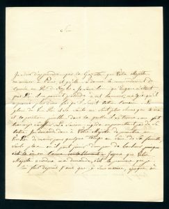 « Je viens d’apprendre par la Gazette que Votre Majesté va arriver à Paris et qu’elle a donné le commandement de l’Armée au Roi de Naples. Je sens bien qu’Eugène n’étant pas Roi, il ne pouvait prétendre à cet honneur, malgré qu’il a prouvé plus d’une fois qu’il savait battre l’ennemi. La gloire du Vice-Roi et sa santé me sont plus chères que la vie et la position pénible dans laquelle il se trouve me fait beaucoup souffrir. La saison rigide ne permettant pas de se battre, je demande donc à Votre Majesté de permettre au Vice-Roi de revenir pour quelque temps au sein de sa famille... » Elle a biffé cette remarque C’est là où on l’aime véritablement, pour insister sur sa demande, la première qu’elle fait depuis 7 ans que je suis mariée...