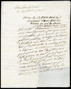 Lettre autographe signée adressée à mon cher camarade. Varsovie, 14 septembre 1807. 2 pp. ½ in-4. Un coin du second feuillet est manquant, sans atteinte au texte. « Mr le Mal Kellermann a bien voulu, mon cher camarade, faire pour moi une commission… en prenant possession de la cave…il m’a réservé un tonneau de vin qu’il fait mettre à ma disposition à mayence… Je prie de faire mettre chez vous le tonneau que je vous ferai boire à votre 1er voyage à Paris… »