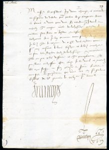 Lettre signée adressée au Premier Président Jean de Selve. St-Germain-en-Laye, 26 avril [1523]. ½ p. in-folio, adresse au verso. Quelques rousseurs. Le Roi envoie vers la cour de Parlement le seigneur de Villers « pour vous faire ententre que je vueil et entends que maistre Nicole de La Chesnaye potestat de Millan soit receu et institué en loffice de conseiller de ladite court dont je lay pourveu… »
