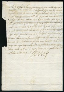 Datée d’une époque décisive de son règne, alors qu’il vient de faire son entrée dans la ville de Rouen, où le roi s’apprête à tenir l’Assemblée des Notables. Henri IV sollicite Achille de Harlay pour que celui-ci lève la mesure « d’emprysonnenment quy a esté fet au préjudice du trété du sieur de Boysdauphin pour le décret et ordonnance de [sa] court de parlemant, de la personne de Maître Martyn Ourceau…et de pryer yncontynant de donner ordre que ledyt Ourceau soyt mys promtemant hors desdytes prysons sans y user d’aucun refus nI dyffyculté… »