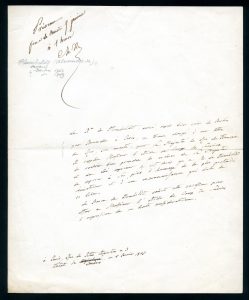 Lettre autographe signée à la troisième personne adressée à Louis-Philippe. (1845). 1 pp. in-8. Missive de Humboldt chargé de mission diplomatique du Roi de Prusse, demandant audience auprès du Roi des Français : « Le baron de Humboldt arrivé depuis hier soir de Berlin par Bruxelles à Paris, se trouve chargé d’une lettre du Roi son maitre pour sa Majesté... Il supplie Monsieur l’aide de camp de service, de vouloir bien prendre les ordres de Sa Majesté et de lui exprimer le vif désir de M. de Humboldt, de déposer à ses pieds, l’hommage de sa plus profonde vénération et d’une reconnaissance qui date de si loin… »