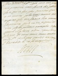 Lettre signée Louis rédigée par son secrétaire particulier Toussaint Rose (1611-1701). Au camp d’Hurtebise, 20 mai 1676. 1 page in-4. Le roi remercie un Cousin lui ayant témoigné son affection, laquelle « donne des idées de ce [qu’il fait] plus grands [qu’il] ne mérite… » ; le roi les accepte néanmoins « comme des augures qui [le] flattent bien moins d’espérance qu’ils ne [le] piquent de désir de les pouvoir accomplir… »