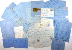 Correspondance à Élisabeth de Grèce. 1953 & 1956. 13 documents avec enveloppe. Correspondance amicale de la violoniste et actrice Roxo Betty Calish, adressée à Hélène de Grèce dans sa villa Rose Alba à Cannes ; ancienne épouse du chef d’orchestre Félix Weingartner, Roxo Calish fut une amie intime de Marie de Roumanie auprès de qui elle entretint une très abondante correspondance.