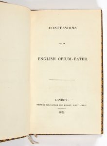 Fameuse confession autobiographique sur l'addiction à l'opium dont le succès devait assurer la renommée de Thomas De Quincey (1785-1859). Son ouvrage a été traduit en français dès 1828 par Alfred de Musset (adapté plutôt que traduit serait plus juste) puis par Baudelaire, qui intégra Le mangeur d'opium dans Les Paradis artificiels (1860).