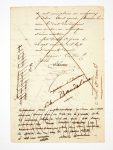 La note autographe signée de Baudelaire de sept lignes en pied est soigneusement caviardée. On peut cependant la déchiffrer: “Je reconnais devoir à Monsieur Roux la somme de cent soixante francs dont ce traité est la garantie. Si le 25 décembre 1852 je n'ai pas rendu cette somme, j'autorise Mr Roux à mettre en opposition au paiement des 300 francs qui doit, aux termes de ce traité, être porté [?] dans ma main, le 10 janvier 1853.