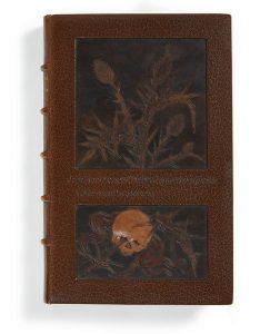 Exemplaire non rogné, relié en maroquin orné d'un grand cuir incisé en deux parties par Marius Michel.