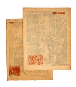 La revue d'estampes vit le jour après la brouille avec Remy de Gourmont et son départ de L'Ymagier. Alfred Jarry fit même les frais de caractères typographiques spéciaux. Les deux livraisons poursuivent la confrontation entre bois gravés anciens et recherches contemporaines. Ainsi sont juxtaposés des bois de Dürer et de Georgin, l'imagier d'Épinal. Le Christ en croix, composition en couleurs d'Émile Bernard rehaussée à la main, est la seule image contemporaine.