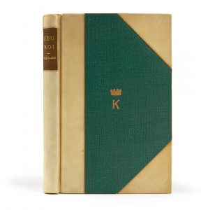 Paris, Édition du Mercure de France, 1897. In-12, demi-vélin à la Bradel avec coins, pièce de titre de maroquin vert, plats de toile verte avec, sur le premier, chiffre “K” couronné et doré, non rogné, tête dorée, couverture conservée (Morrell, London).