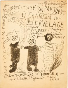 Répertoire des Pantins. La Chanson du décervelage. Paroles d'Alfred Jarry. Musique de Claude Terrasse. Créée par M. Jacotot. Paris, Édition du Mercure de France, 1898. Grand in-4, en feuilles.