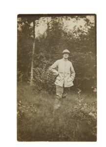 On joint une photographie originale de Paul Éluard en pied en uniforme militaire prise en 1916. (Tirage argentique sur papier support carte postale, 135 x 85 mm.) Cette image est reproduite dans l'album de la Pléiade page 33.