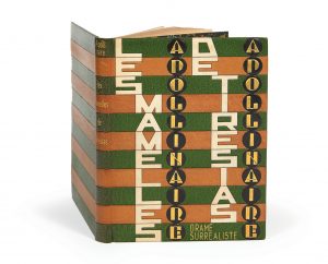 - 3 lettres autographes signées d'Apollinaire adressées à Marcel Herrand qui interpréta le premier rôle masculin de la pièce à sa création le 24 juin 1917. La deuxième lettre comprend le manuscrit autographe du poème de dédicace à l'acteur, huit vers à l'encre violette: